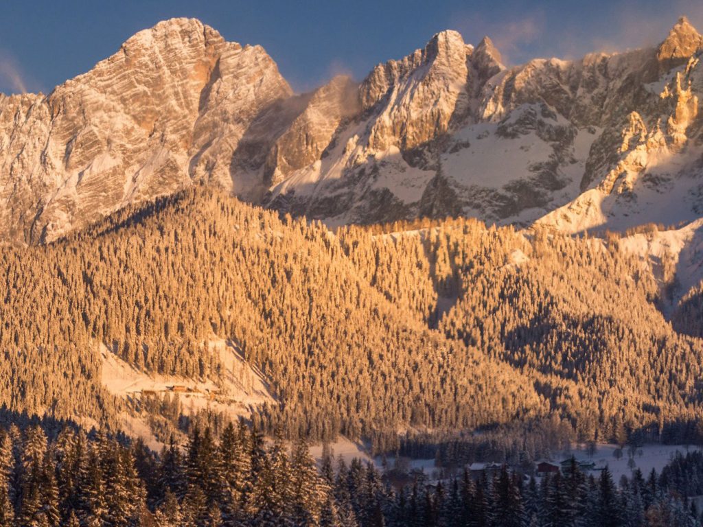 Wenn ihr das Panorama von oben genießen möchtet, könnt ihr euch in der Region Schladming-Dachstein ein Winterwanderticket kaufen. Das kostet für vier Tage 84 Euro und damit besucht ihr zum Beispiel den Dachstein Gletscher mit Eispalast und der Treppe ins Nichts.