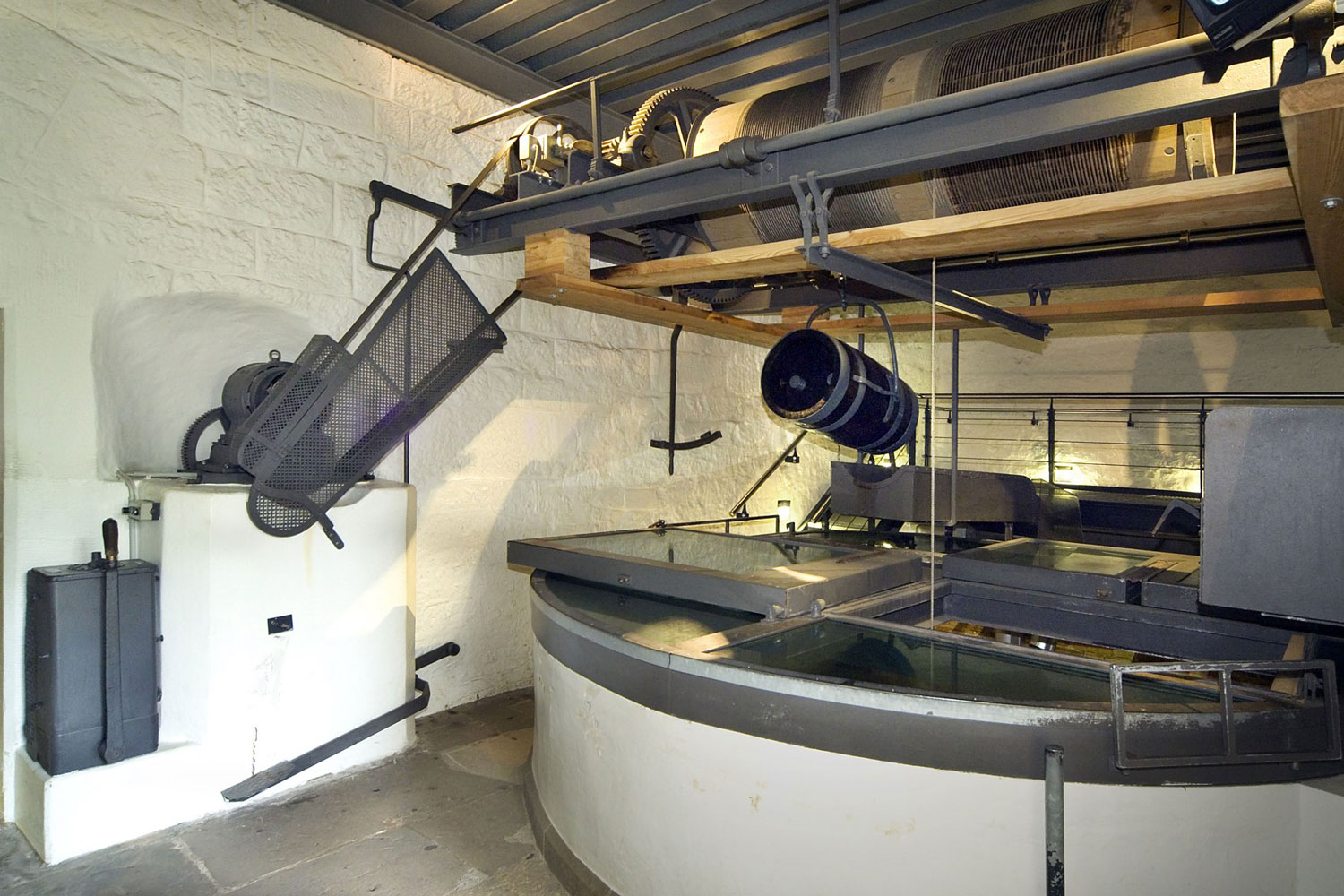 Der Brunnen ist außerdem beleuchtet. So kann man beim Blick über den Rand die Dimensionen der Tiefe erahnen. Es geht tatsächlich mächtig weit nach unten. Außerdem wird regelmäßig vorgeführt, wie Wasser seit dem Jahr 1911 mit einem Motor gefördert wird.