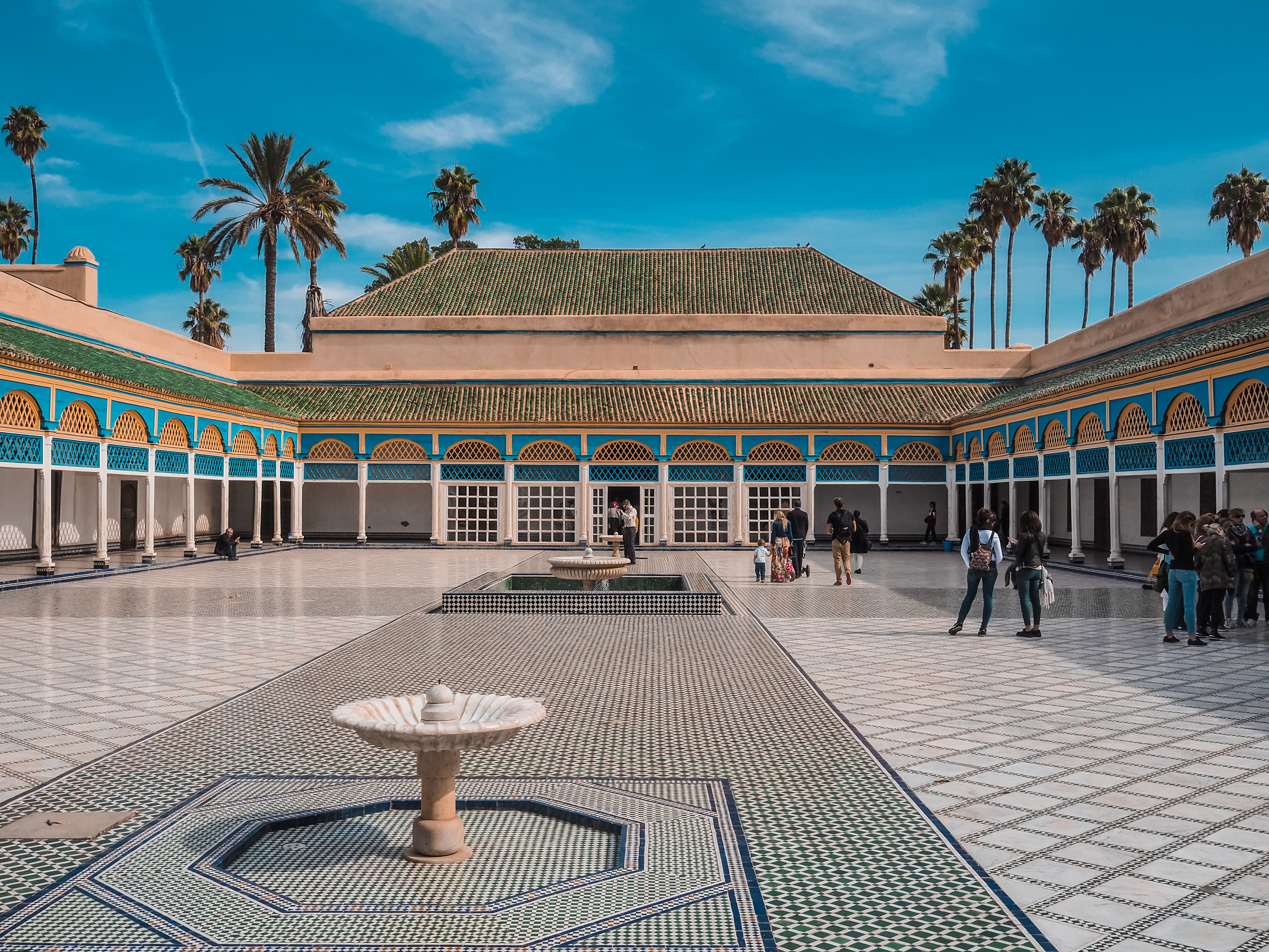 Fototipp: Viele Hostels und Riads bieten im Innenhof oder auf den Dachterrassen oft schöne Fotospots. Ebenso wie einige Cafés am Djemaa el Fna oder dem Marché d‘épices. Wer eine Unterkunft erwischt hat, wo das nicht so ist, kann die wunderschöne arabische Mosaikkunst im Bahia-Palast auf Foto einfangen.