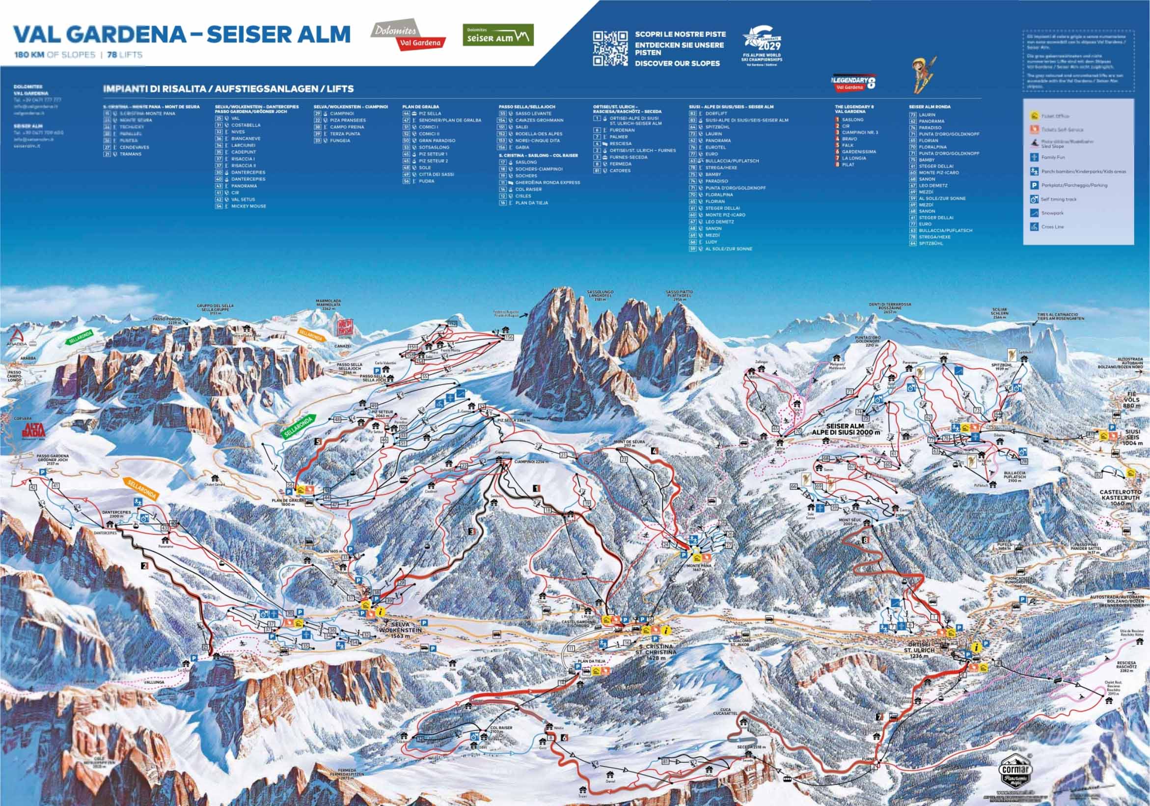 Alle Abfahrten und Liftanlagen in Gröden (Val Gardena) im Überblick.