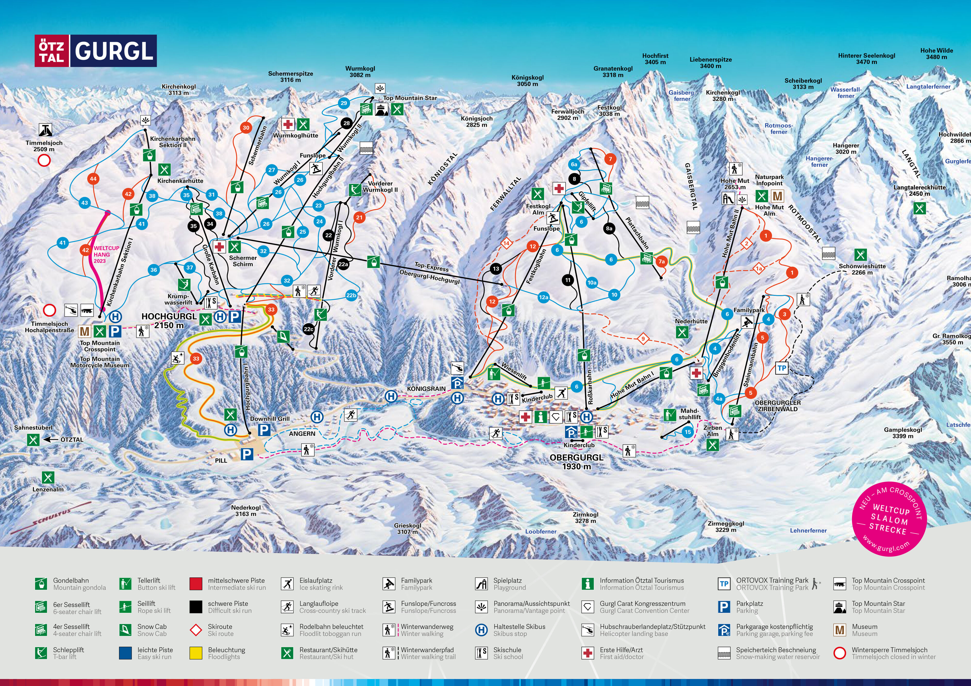 Alle Abfahrten und Liftanlagen in Obergurgl-Hochgurgl im Überblick.