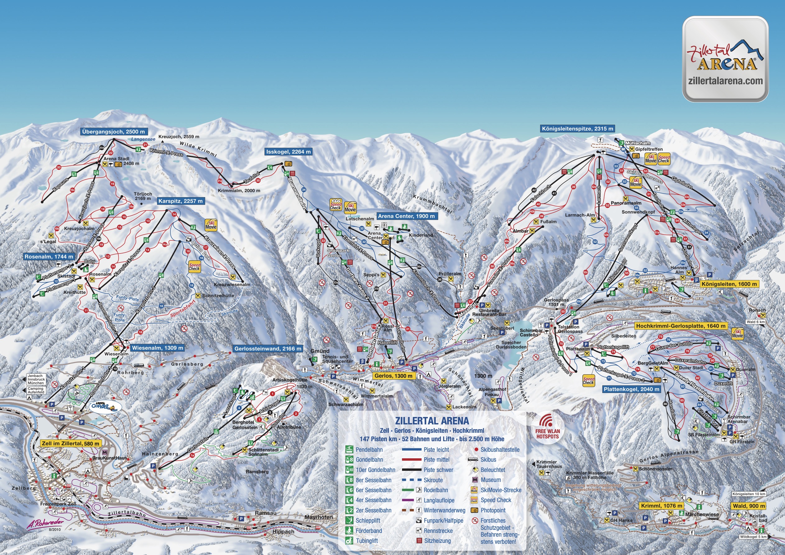 Die meisten Ski- und Snowboardfahrer starten den Pistentag wohl in Zell am Ziller, alternativ kann man aber auch von Gerlos oder Königsleiten hinauf gondeln. Nach der Fahrt mit der Karspitzbahn oder Rosenalmbahn kann man sich erst einmal gemütlich einfahren. Der 2.257 Meter hohe Karspitz ist überzogen von relativ breiten roten und blauen Pisten – darunter auch die rot-blaue 18, die legendäre „Sportabfahrt“, die als schönste Abfahrt des Skigebiets gilt.