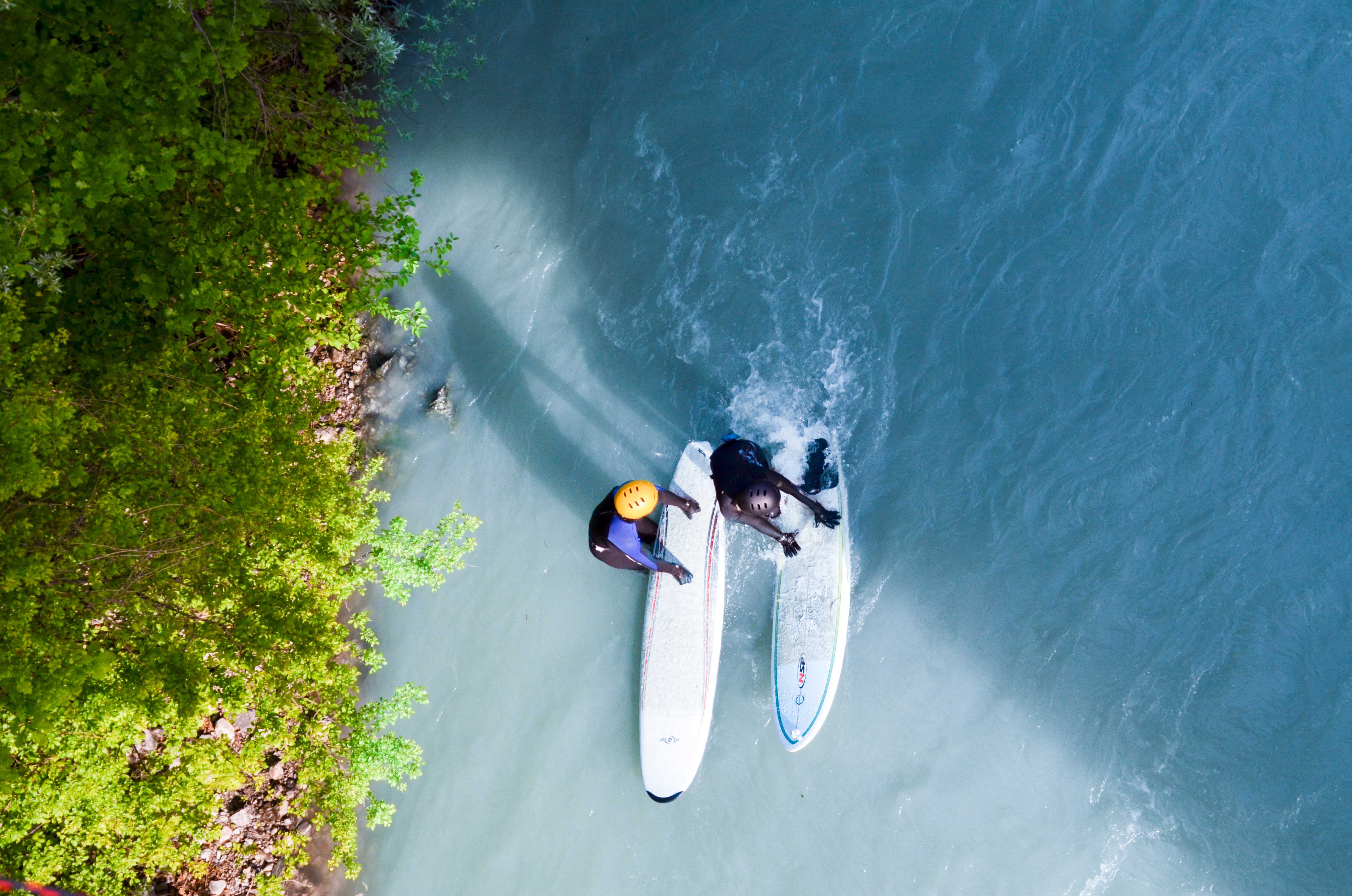 Leihausrüstung zum Up Stream-Surfen gibt’s vor Ort