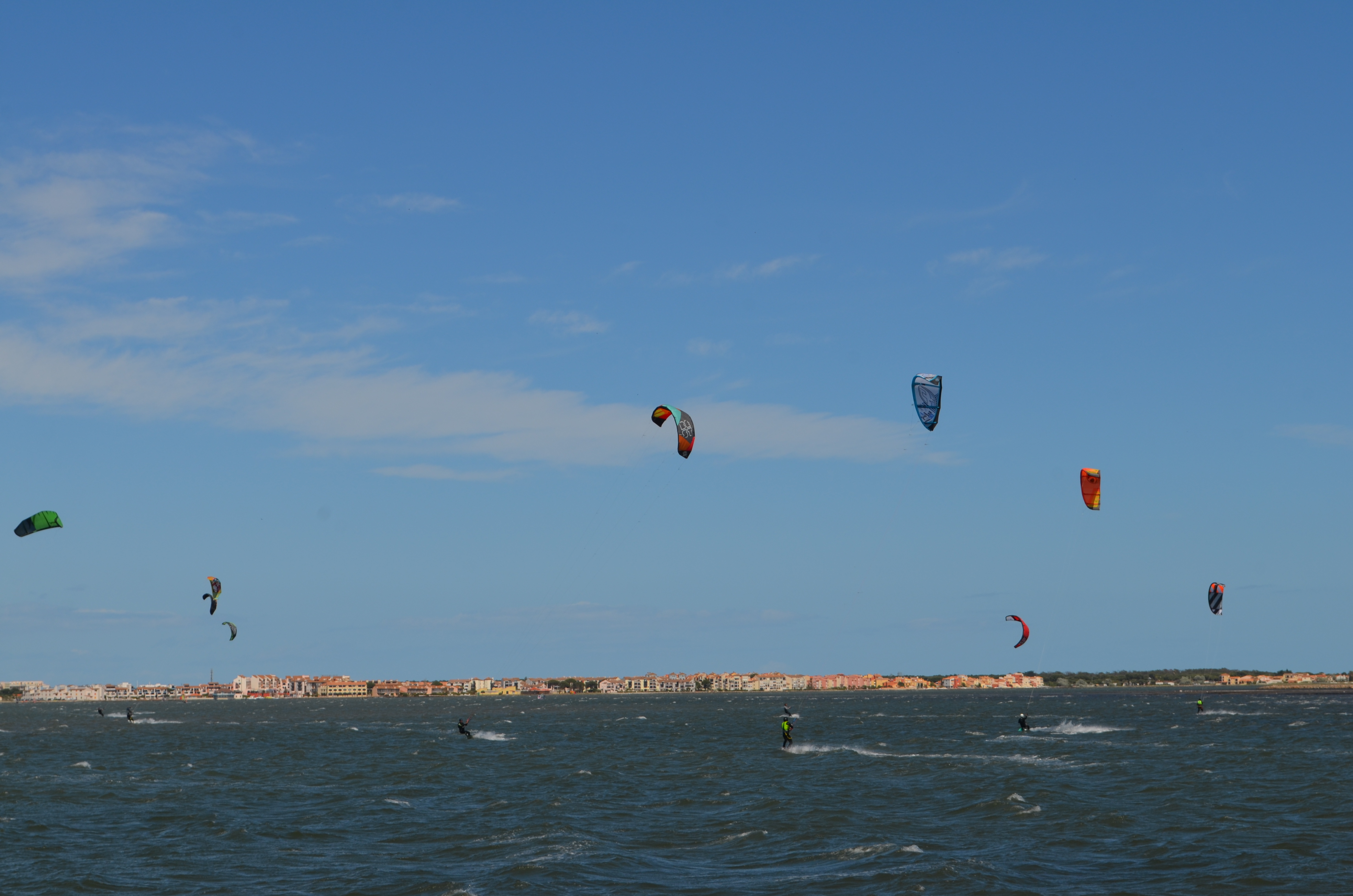 Das malerische Örtchen Leucate an der Grenze zu Spanien bietet starke Winde und traumhafte Strände. Daher zählt der Kitespot auch zu den beliebtesten am Mittelmeer. Der bekannteste Wind Mistral kommt von Nord-Frankreich und wird durch den Düseneffekt durch die Pyrennäen und Alpen verstärkt. Er weht side-offshore und ist daher nur bedingt Einsteigern zu empfehlen. Der Wind Tramontana kommt dagegen sideshore, ist aber sehr böig. Der Wind Marin weht am schwächsten und kommt von Süd-Ost (side-onshore).