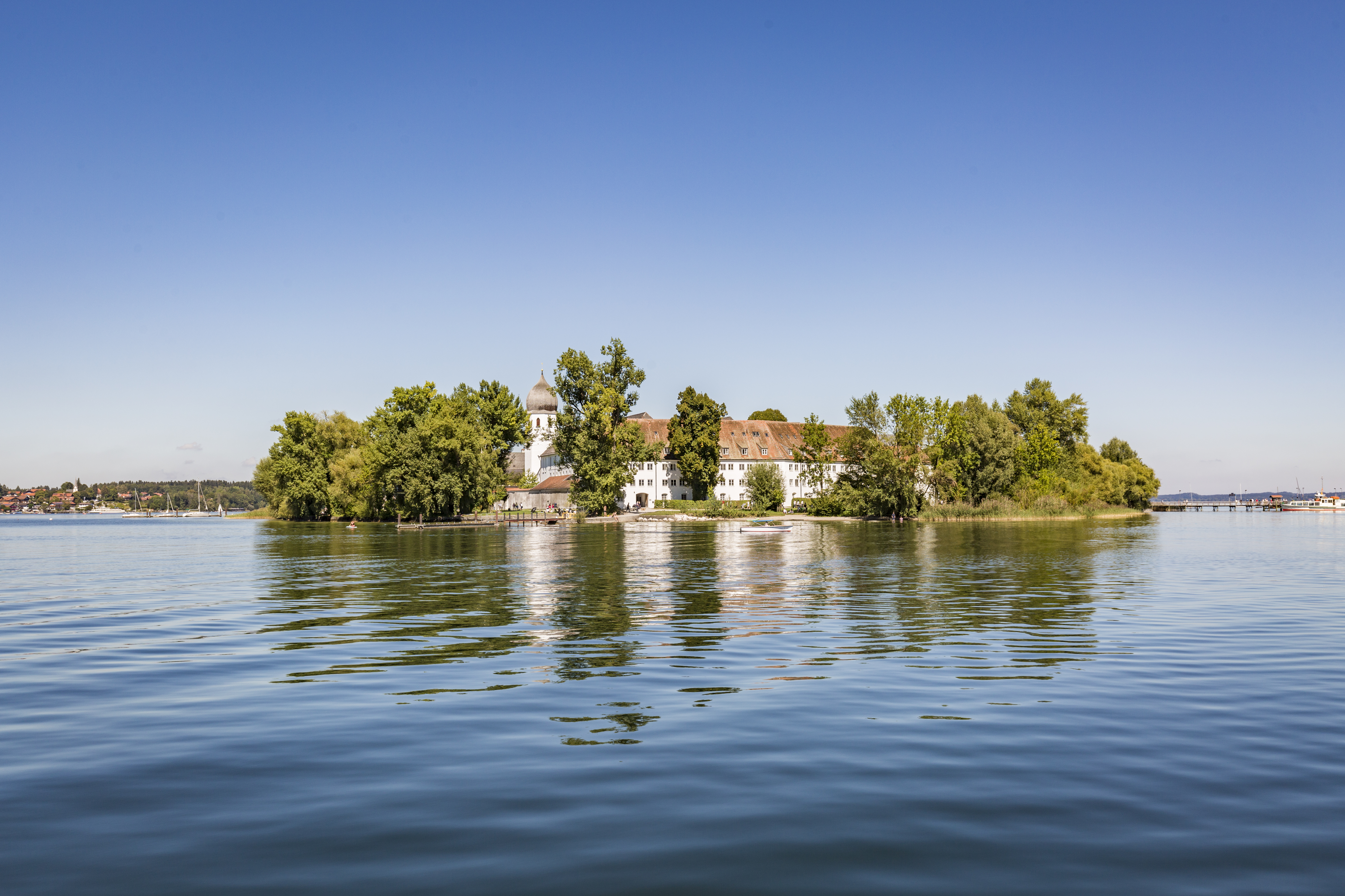 Der Chiemsee ist der größte See in Bayern und wird deshalb gern „Bayerisches Meer“ genannt. Er liegt am Rande der Chiemgauer Alpen und zeichnet sich vor allem durch vielfältige Freizeitmöglichkeiten aus. Ihr könnt mit dem Schiff fahren, Ruderboote ausleihen, Segeln oder Baden. Um den See herum führt der beliebte Chiemsee-Radweg auf einer Länge von insgesamt 60 Kilometern. Zu den absoluten Highlights gehören die Frauen- und Herreninsel. Sie besitzen einen ganz besonderen Charme. König Ludwig II. hat hier das Schloss Herrenchiemsee errichten lassen. Die Prunkräume des Bayerischen Versailles können im Rahmen einer Führung besichtigt werden. Auf der benachbarten Fraueninsel befindet sich ein malerisches Fischerdorf mit knapp 250 Einwohnern und ein Benediktinerinnenkloster. Zahlreiche Gasthäuser und Cafés laden dort zu einer Stärkung ein.
