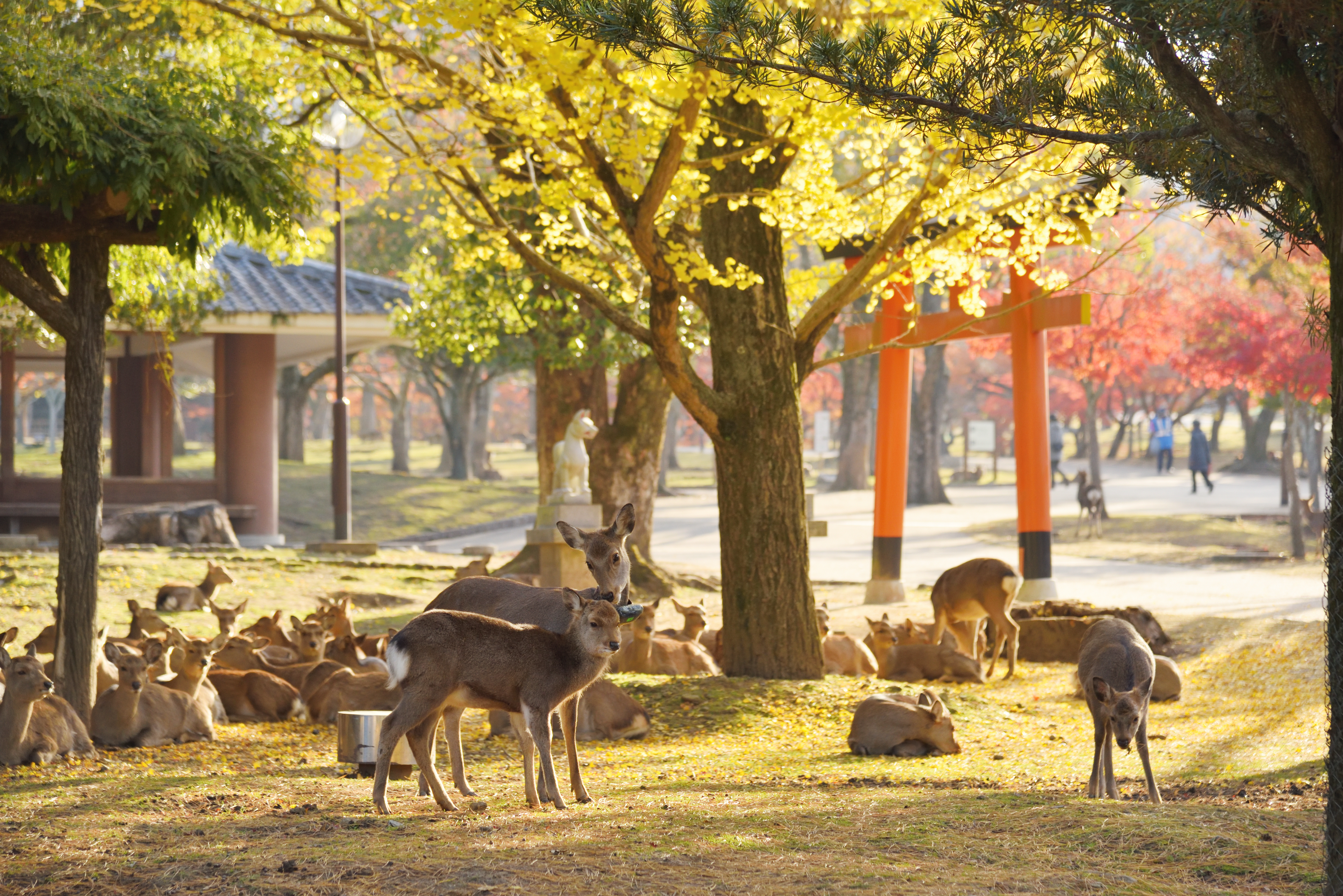 Im Jahr 1880 wurde der Nara-Park in der gleichnamigen Stadt gegründet, der wegen seiner Tempel und im Frühjahr wegen seiner Kirschblüte bekannt ist. Allerdings sind es weder die Gebäude noch die Pflanzen, die täglich Hunderte von Besuchern anziehen, sondern die mehr als 1.000 Hirsche und Rehe, die auf dem Gelände leben und dort frei herumlaufen.