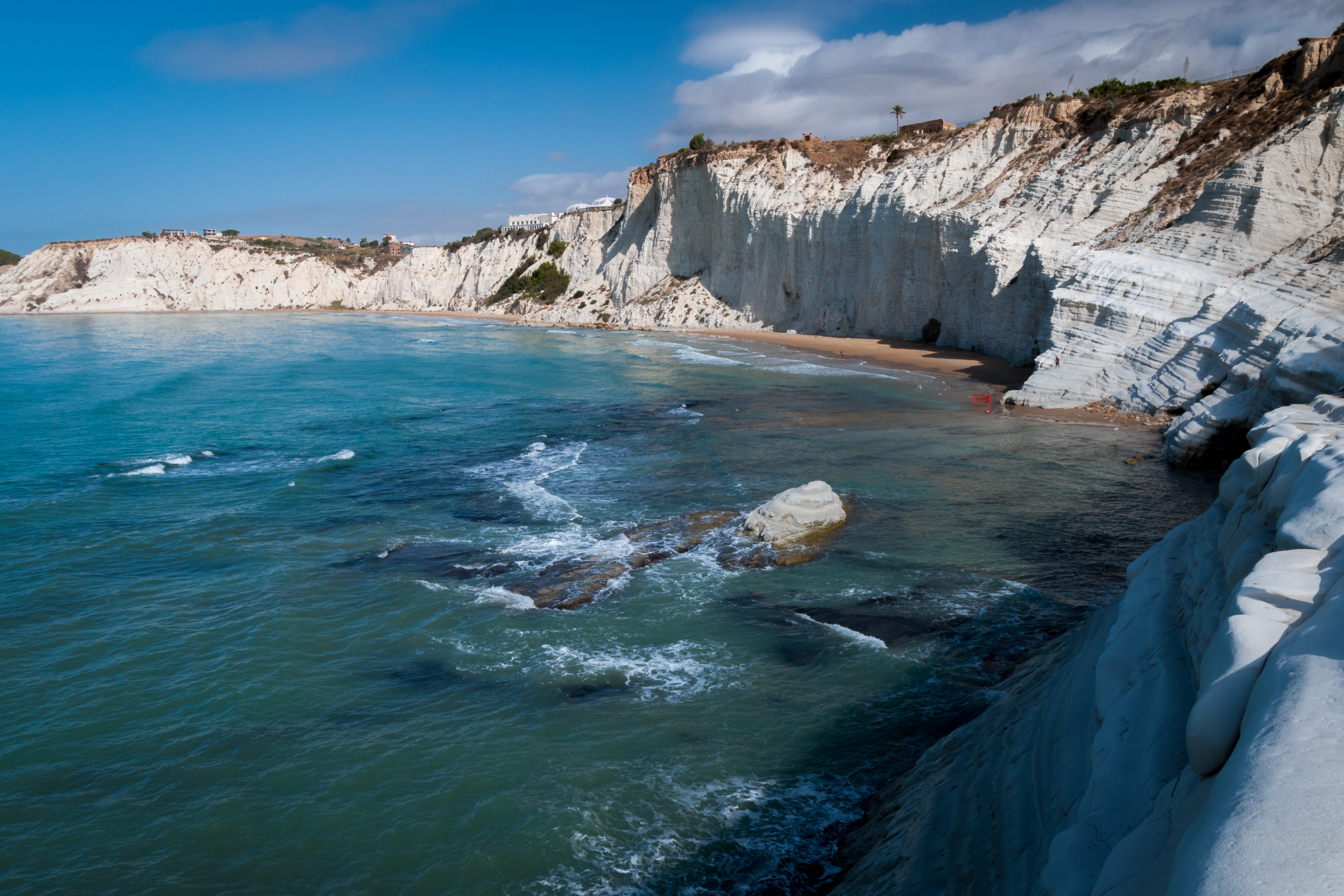 Es ist ein Ort, der fast unwirklich erscheint. Die strahlend weißen Klippen mit ihren treppenähnlichen Formationen bieten nicht nur einen spektakulären Anblick – man kann auch auf ihnen herumlaufen und den Kontrast aus weißem Stein und blauem Meer aus nächster Nähe erleben. Die Stairs of the Turks (Scala dei Turchi) sind außerdem ein beliebter Ort für ein Sonnenbad. Auch der angrenzende Sandstrand lohnt die Anreise. Der Name der Klippen geht vermutlich auf arabische Piraten zurück, die ihre Boote hier verankerten und im Volksmund Türken genannt wurden.