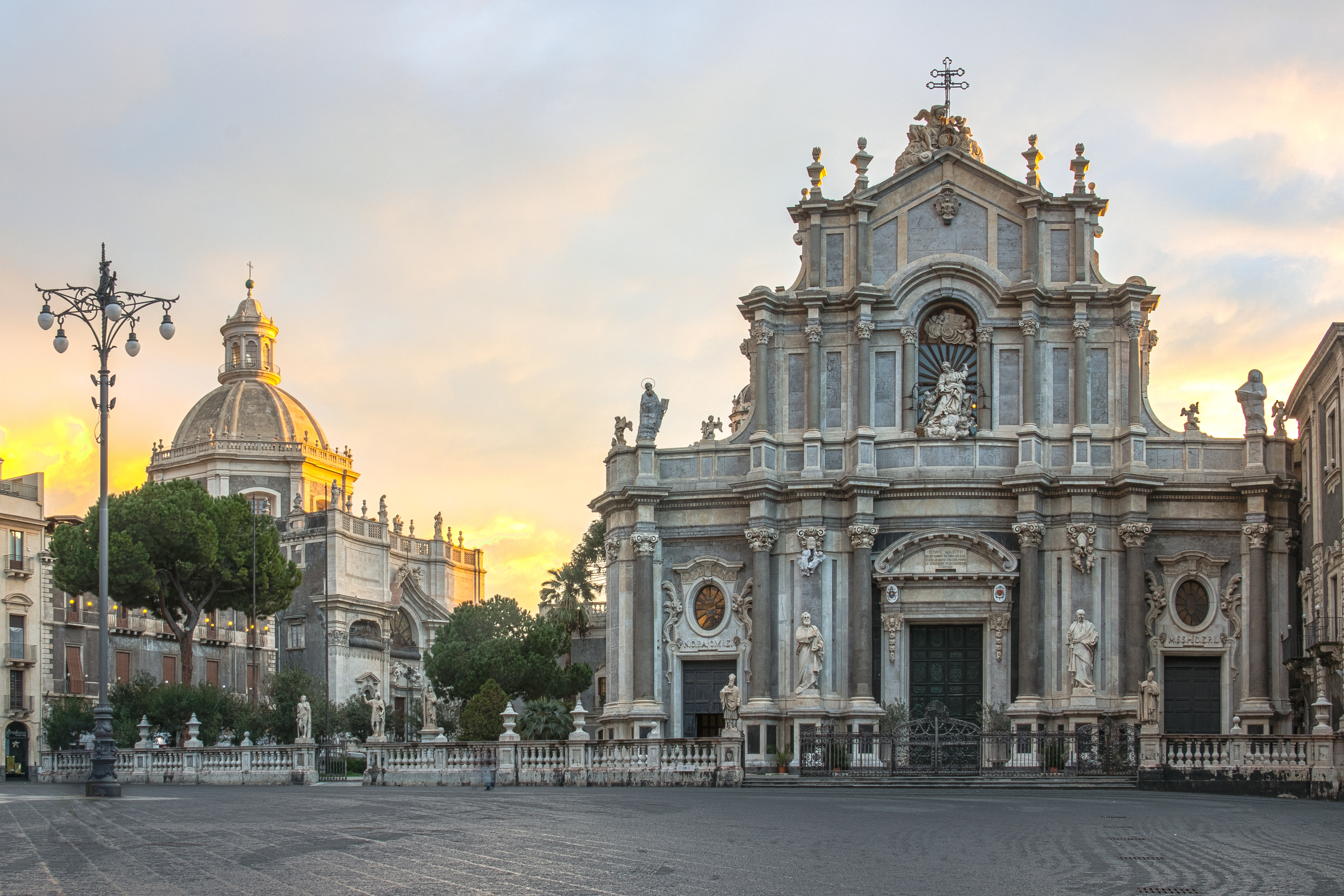 Die Piazza del Duomo ist der zentrale Platz Catanias. Mit über 300.000 Einwohnern ist die Stadt nach Palermo die zweitgrößte der Insel. Nach einem zerstörerischen Erdbeben im Jahr 1693 wurde der Platz im spätbarocken Stil neugebaut. Er ist ein Beweis dafür, dass der Vulkan nicht nur Zerstörung über Catania brachte: Die Lava wurde in ganz Catania als Baumaterial genutzt, was auch auf der Piazza del Duomo zu erkennen ist. Sogar die Elefantenstatue des Fontana dell’ Elefante ist aus schwarzem Lavastein.