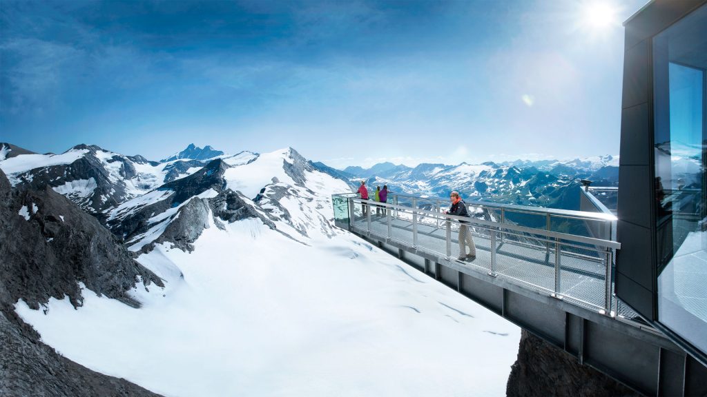 Auf 3.029 Metern Seehöhe bieten die Panorama-Plattformen einen unvergleichlichen Blick auf die Dreitausender des Nationalparks Hohe Tauern samt Gletscher, Großglockner, das Steinerne Meer, die Kitzbüheler Alpen, den Watzmann, den Wilden Kaiser oder den Dachstein und den Zeller See.
