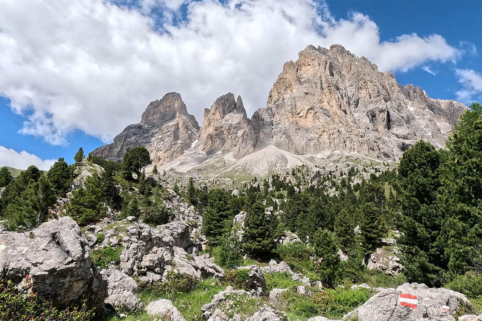 Unweit von hier könnt ihr am nächsten Morgen einen 360-Grad-Blick auf fast alle bekannten Gipfel, darunter die Seceda, den Marmolada und den Platt- und Langkofel genießen. Der Abstieg zurück ins Fassatal ist steil – bewahrt euch ein paar Kraftreserven auf!