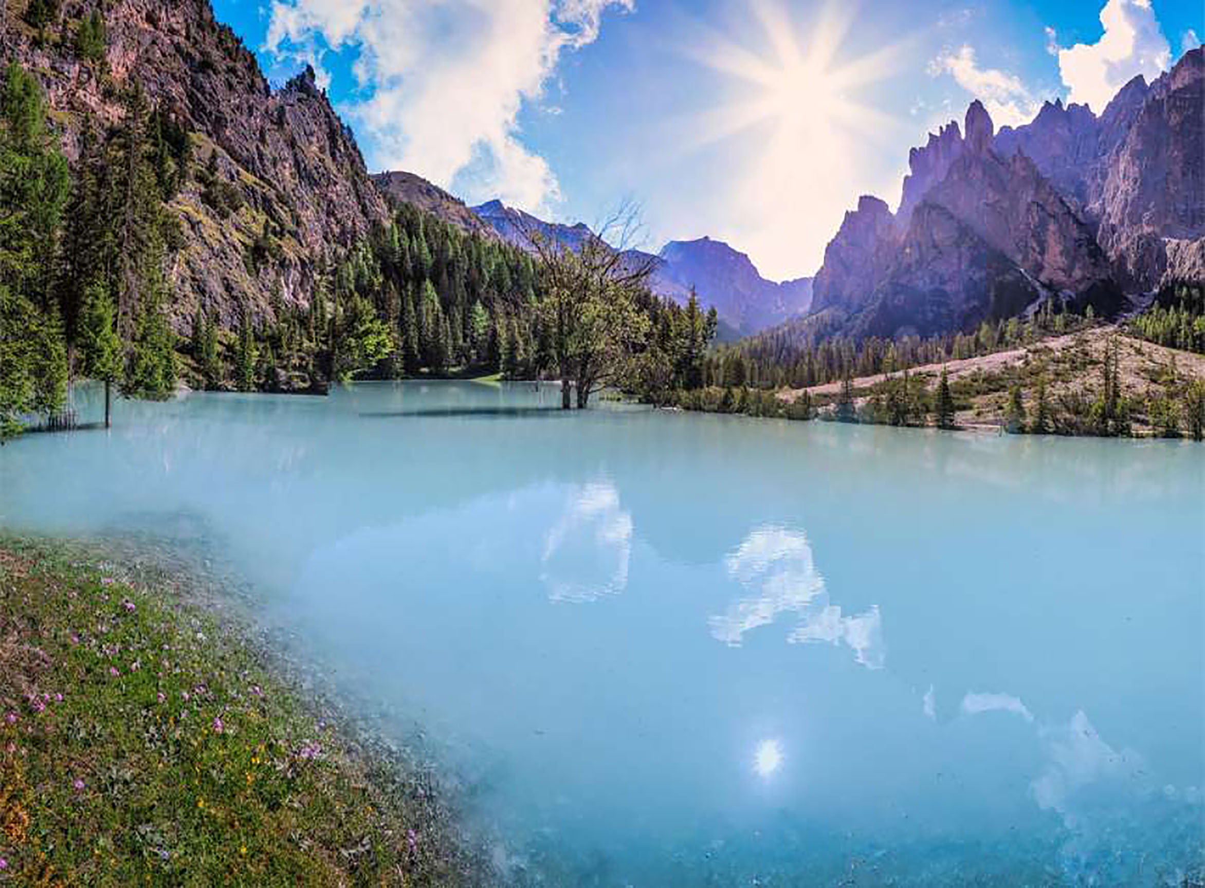 Das Wasser des Lech de Ciampedel leuchtet hellblau. Die Farbe des Sees wirkt beinahe unecht. Da muss man zweimal hinschauen, um sich von der Wirklichkeit zu überzeugen. Allerdings kann er im nächsten Augenblick auch tatsächlich wieder verschwunden sein. Nicht etwa, weil ihr ihn euch eingebildet habt, sondern weil er Jahr für Jahr nur für eine kurze Zeit zu sehen ist. Kurz nach der Schneeschmelze im Frühling taucht der See für wenige Wochen auf. Je nach Wasserstand können es auch nur wenige Tage sein. Es gehört also auch immer ein bisschen Glück dazu. Aber auch zu Zeiten, in denen der Grund trocken liegt, lohnt sich eine Wanderung in das malerische Langental. Hier scheint die Zeit stehengeblieben zu sein und die Natur wirkt ursprünglich. Es ist ein Tal zum Innehalten und Genießen.