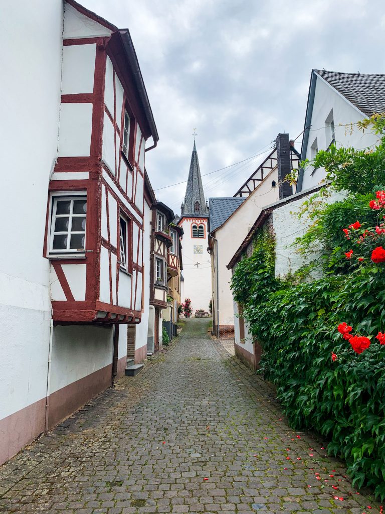 Ebenso sehenswert ist der Ort Beilstein mit seinen engen Gassen. So schlendern wir an Fachwerkhäusern vorbei, an denen Weinpflanzen nach oben ragen. Der Ort ist als „Dornröschen der Mosel“ bekannt, weil die verspielte Architektur so aussieht, als sei sie einem Märchenbuch entsprungen.