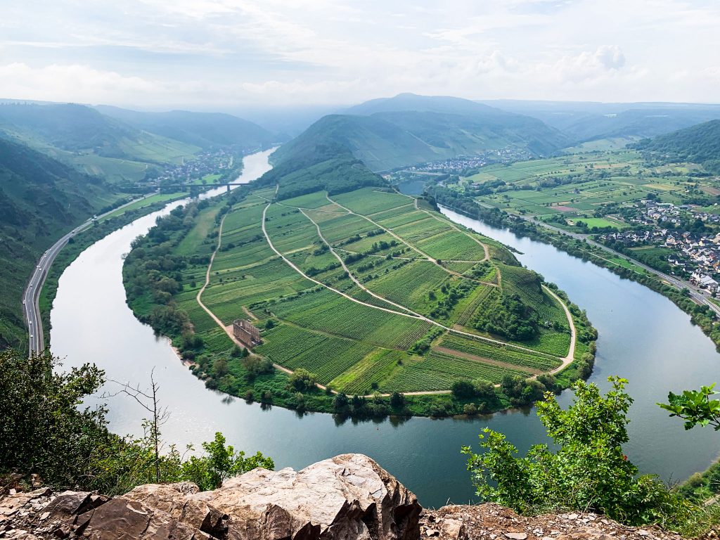 Der Calmont ist der steilste Weinberg Europas. Stellenweise weist der Hang eine Neigung von bis zu 65 Grad auf. Zudem ist der Calmont die höchste Erhebung der Moselweinberge und ein geschätztes Ausflugsziel. Von oben habt ihr nämlich einen genialen Blick auf die Moselschleife bei Bremm.