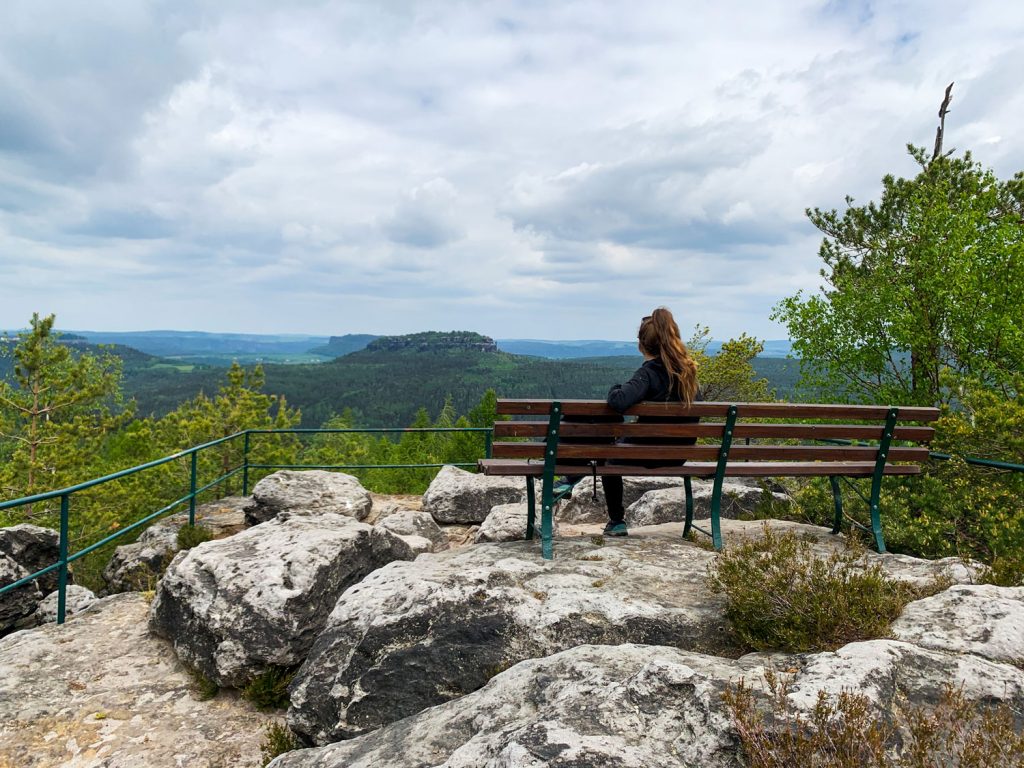 Von der Aussicht könnt ihr weite Teile der Sächsischen Schweiz überblicken. Dort liegen von links nach rechts schauend die Festung Königstein sowie Pfaffenstein und Lilienstein im Hintergrund. Der Blick schweift weiter über den Gohrisch und den Papstein. Letzterer ist übrigens ein toller Spot, um den Sonnenuntergang zu genießen. Noch weiter auf der rechten Seite blickt ihr dann weit in den Nationalpark hinein. Dort könnt ihr die Schrammsteine markant aus der bewaldeten Fläche hervorschauen sehen.