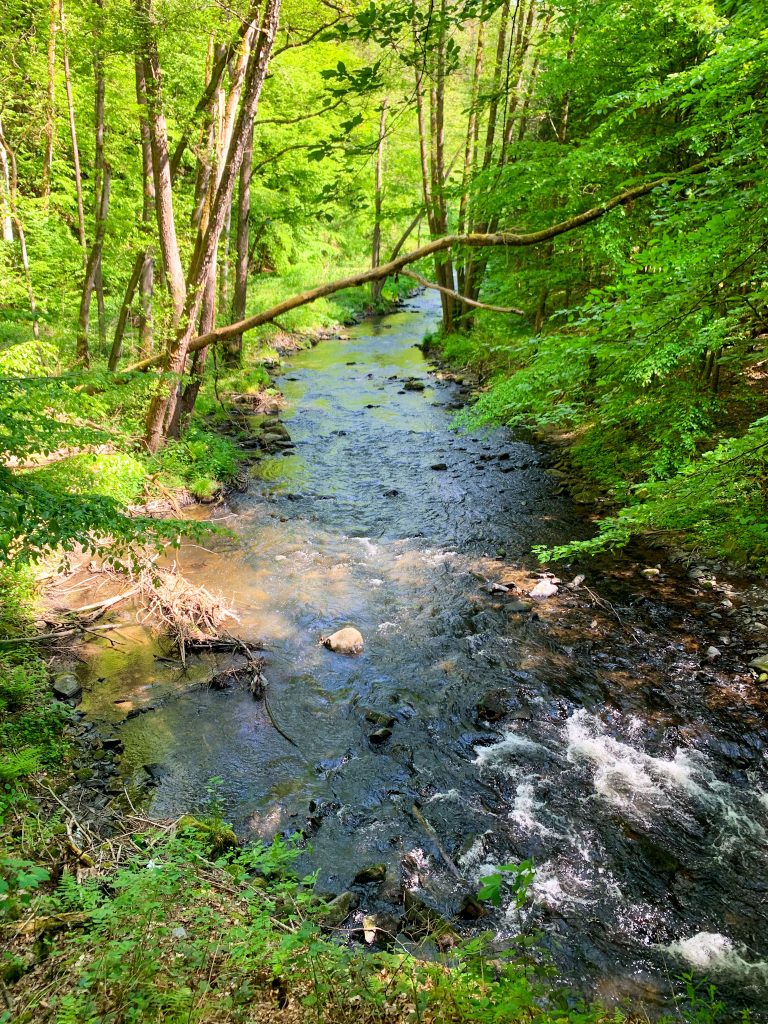 Auch zu Fuß lohnt sich die Wanderung durch das Sebnitztal. Ihr folgt dem Lauf der Sebnitz über einen kleinen Steig durch den Wald. Der Weg verläuft in einer ähnlichen Neigung wie der Fluss. Es geht also vorwiegend eben dahin. Allerdings ist teilweise Trittsicherheit erforderlich, denn gerade an regnerischen oder feuchten Tagen kann der laubbedeckte Untergrund rutschig sein und es geht abschüssig bergab.